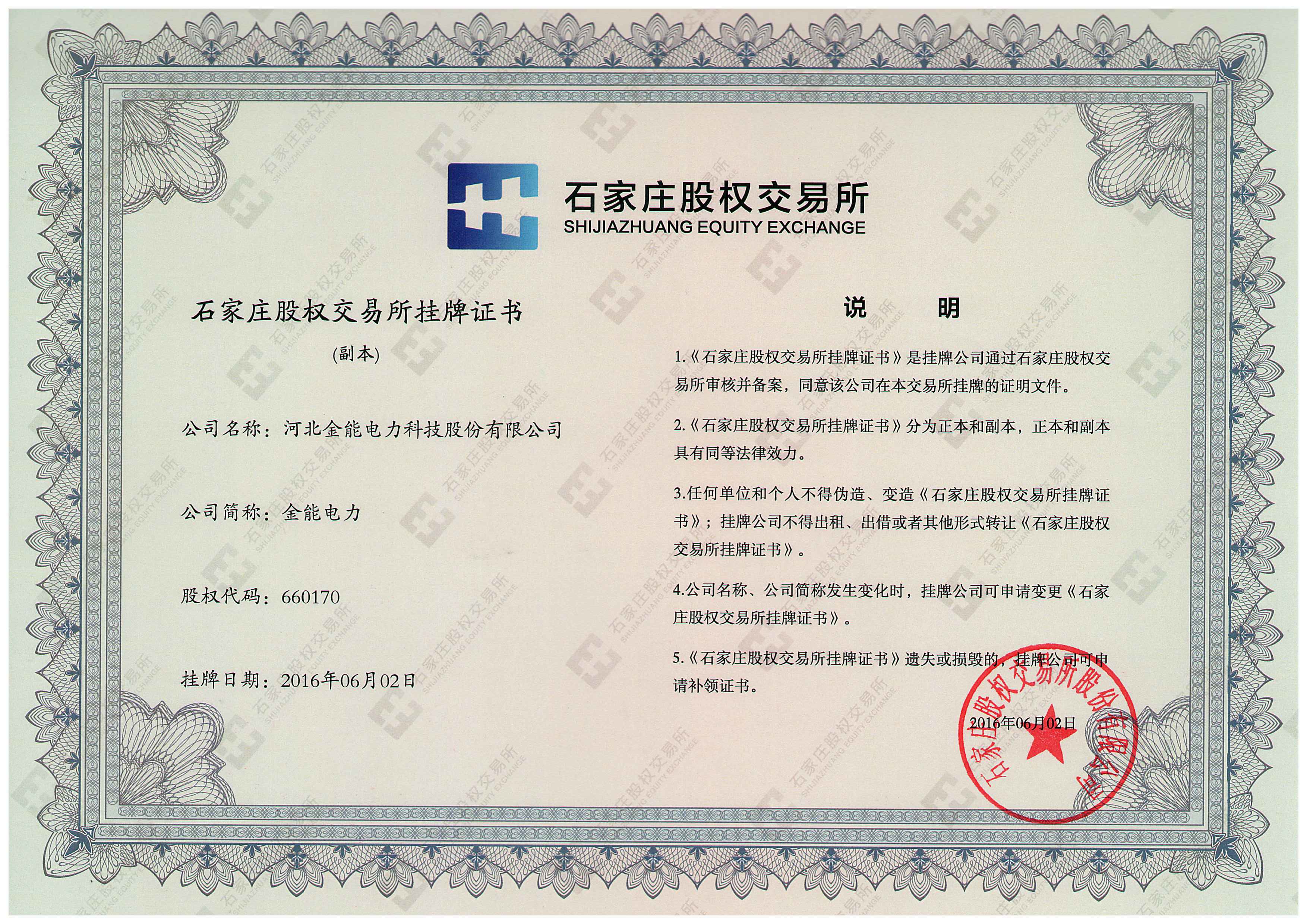 石家莊股權(quán)交易所掛牌證書(shū)